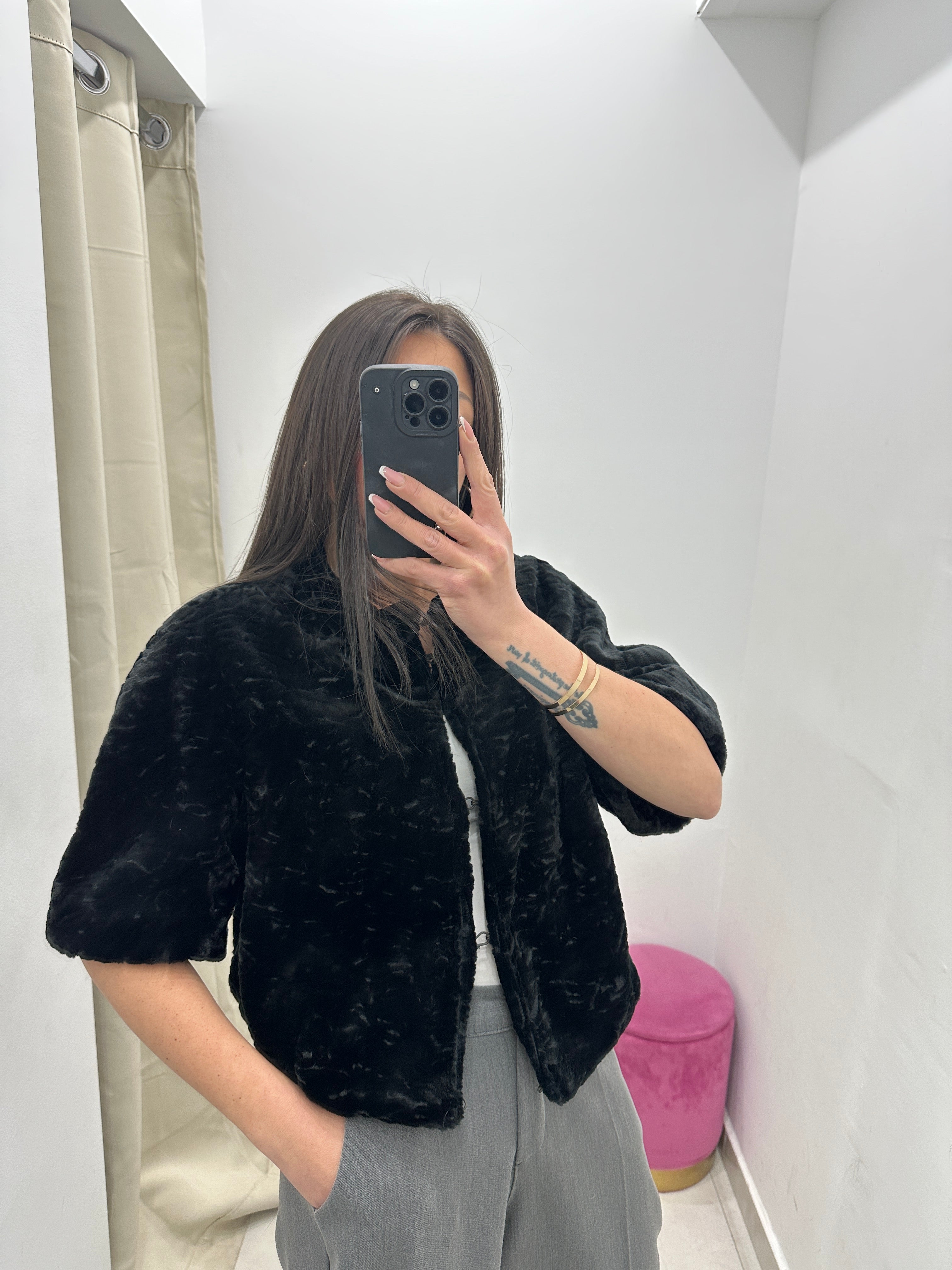 Pelliccia vera vintage in promo nera mezza manica.