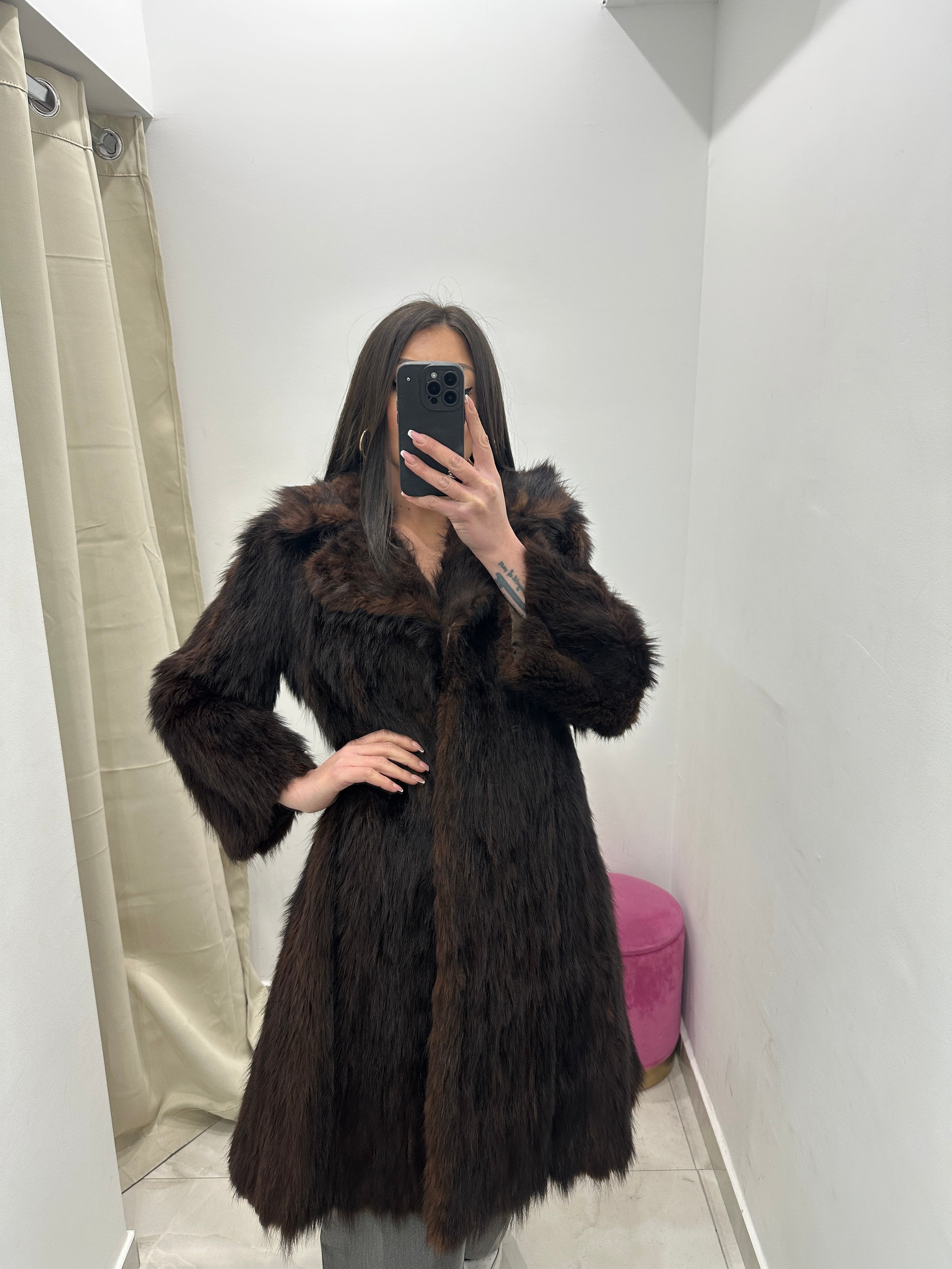 Pelliccia vera vintage marrone lunga