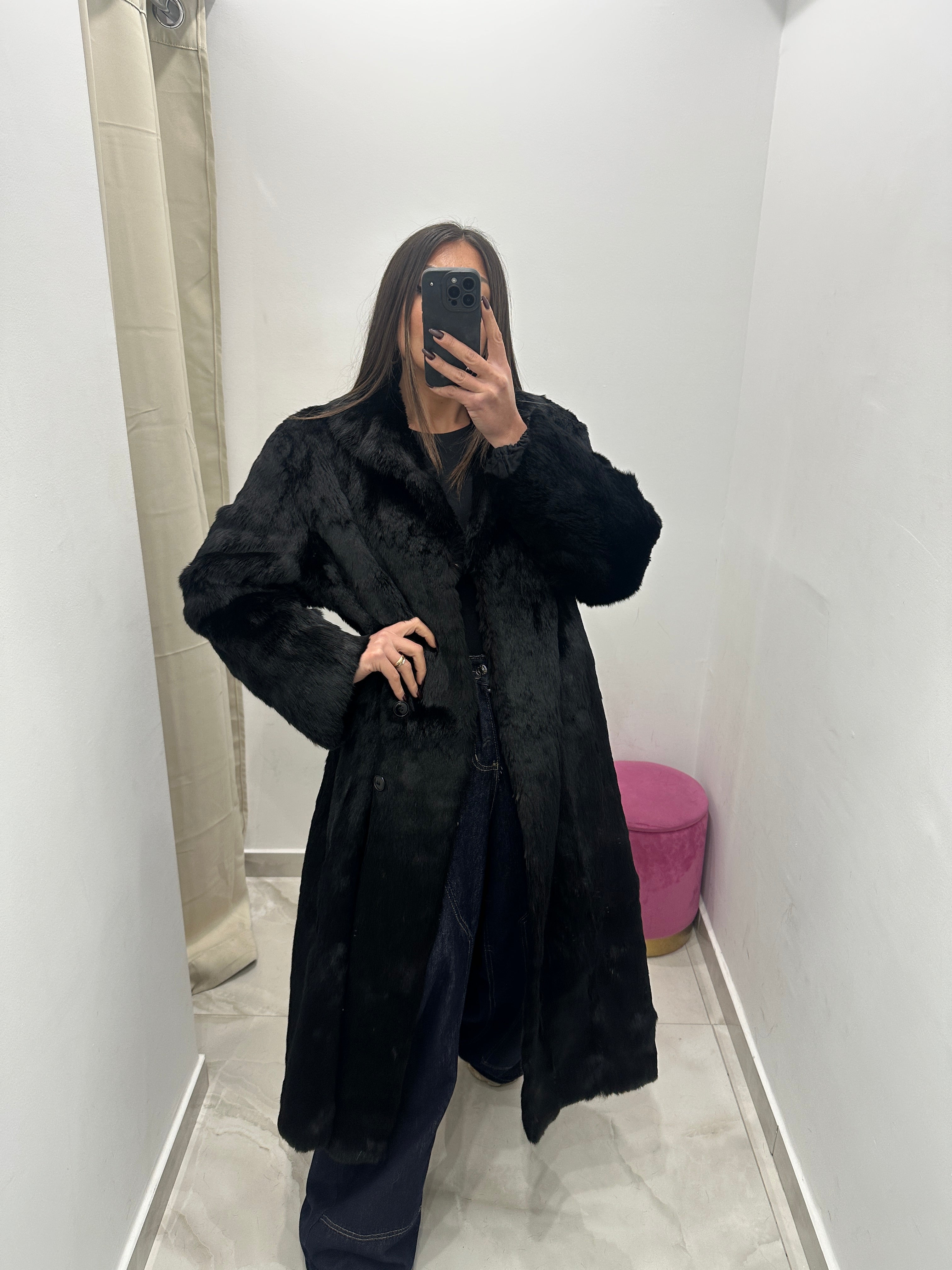 Pelliccia vera vintage nera lunga