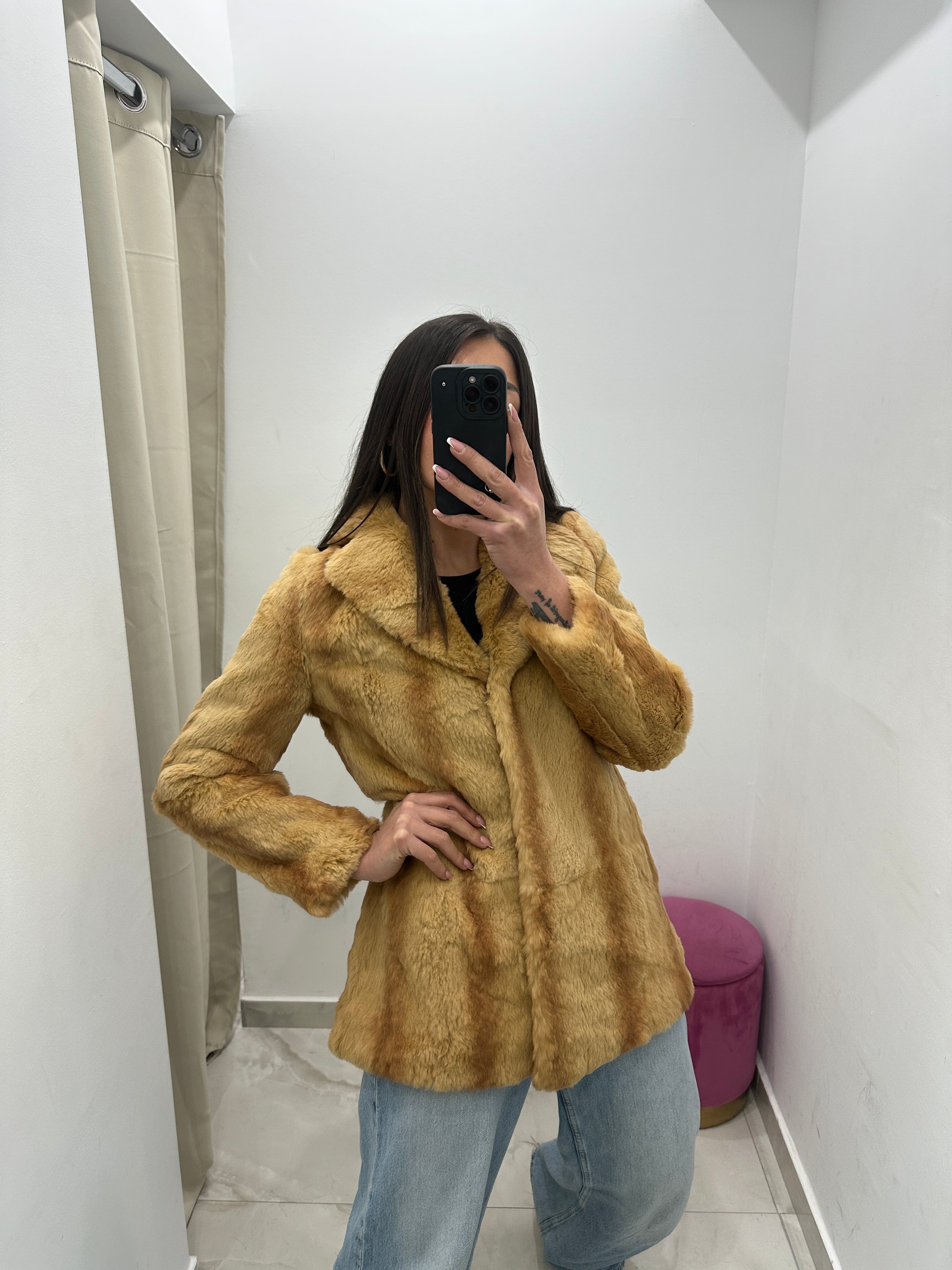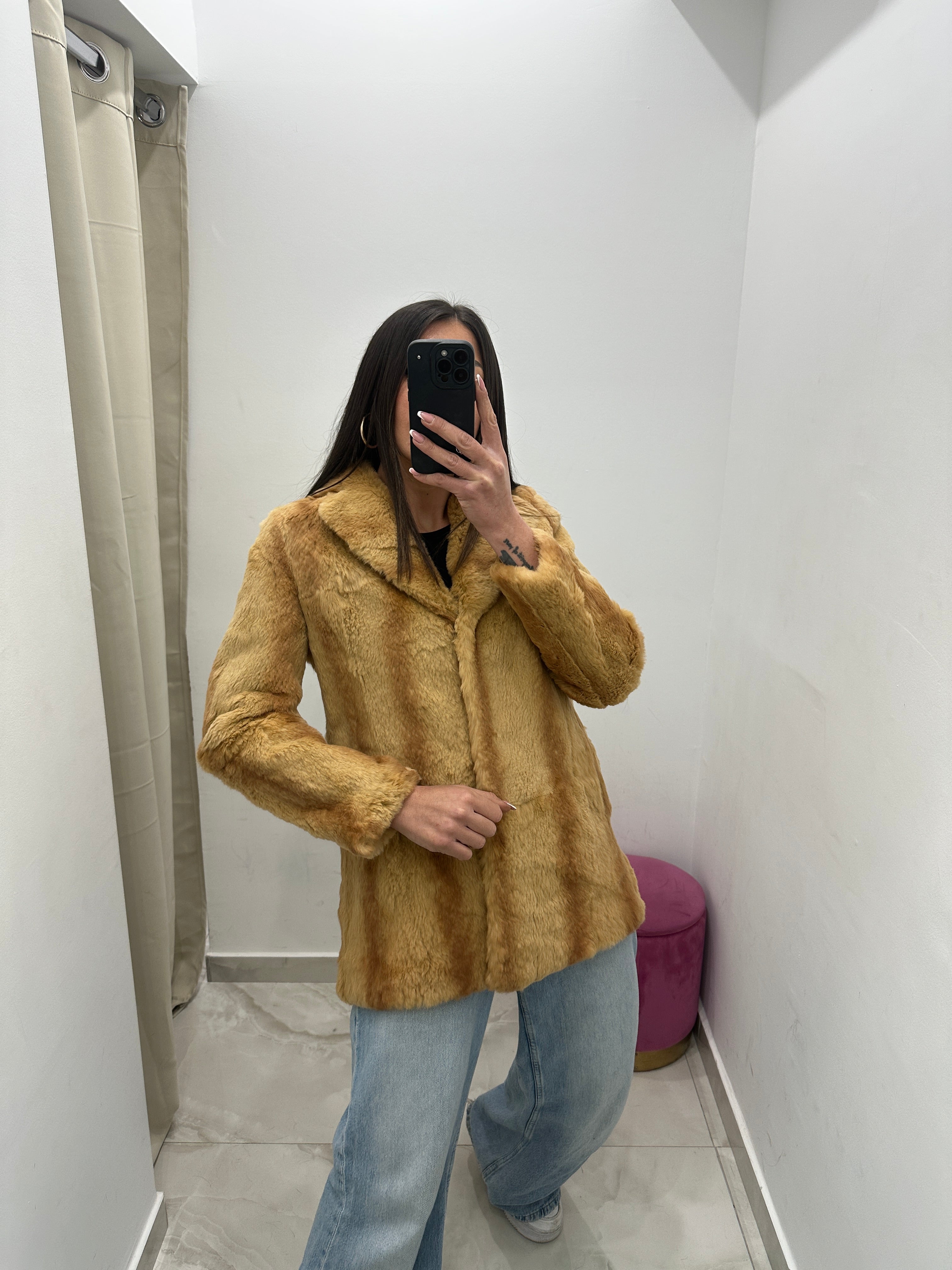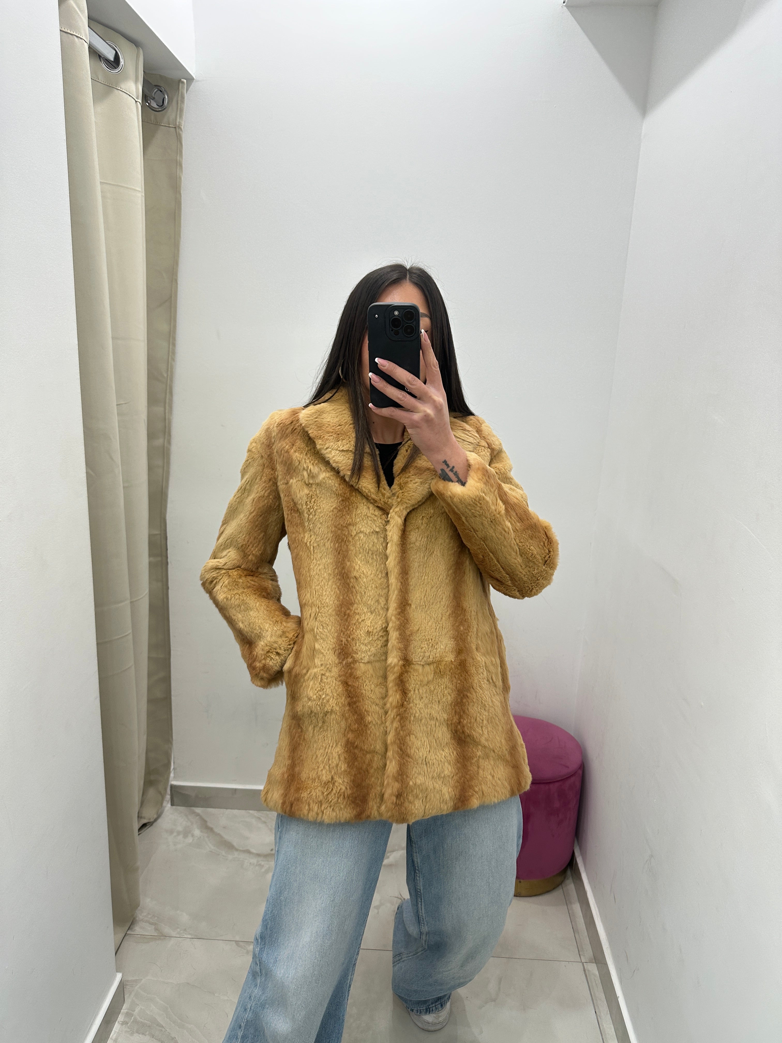 Pelliccia vera vintage miele