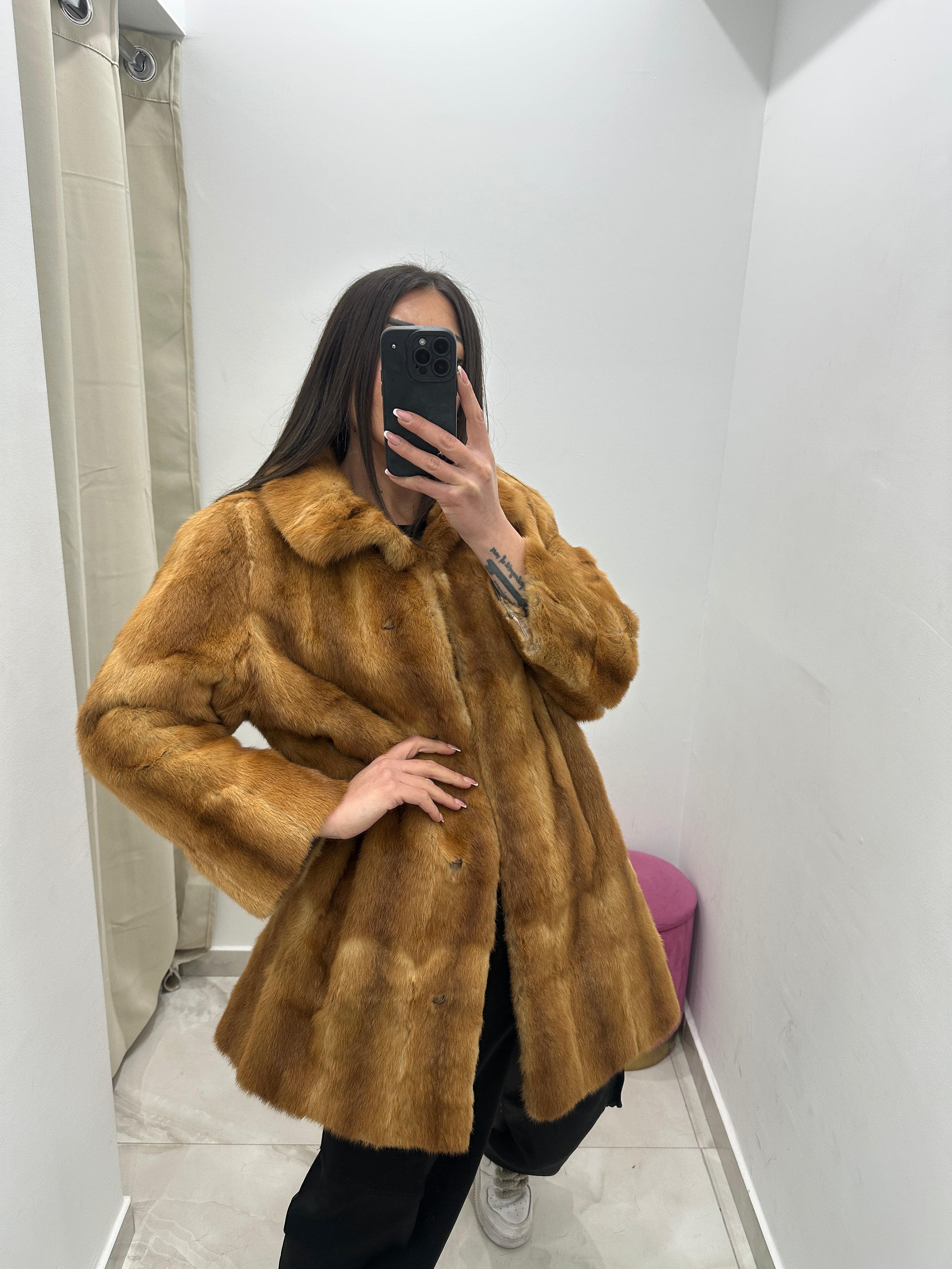 Pelliccia vera vintage miele.