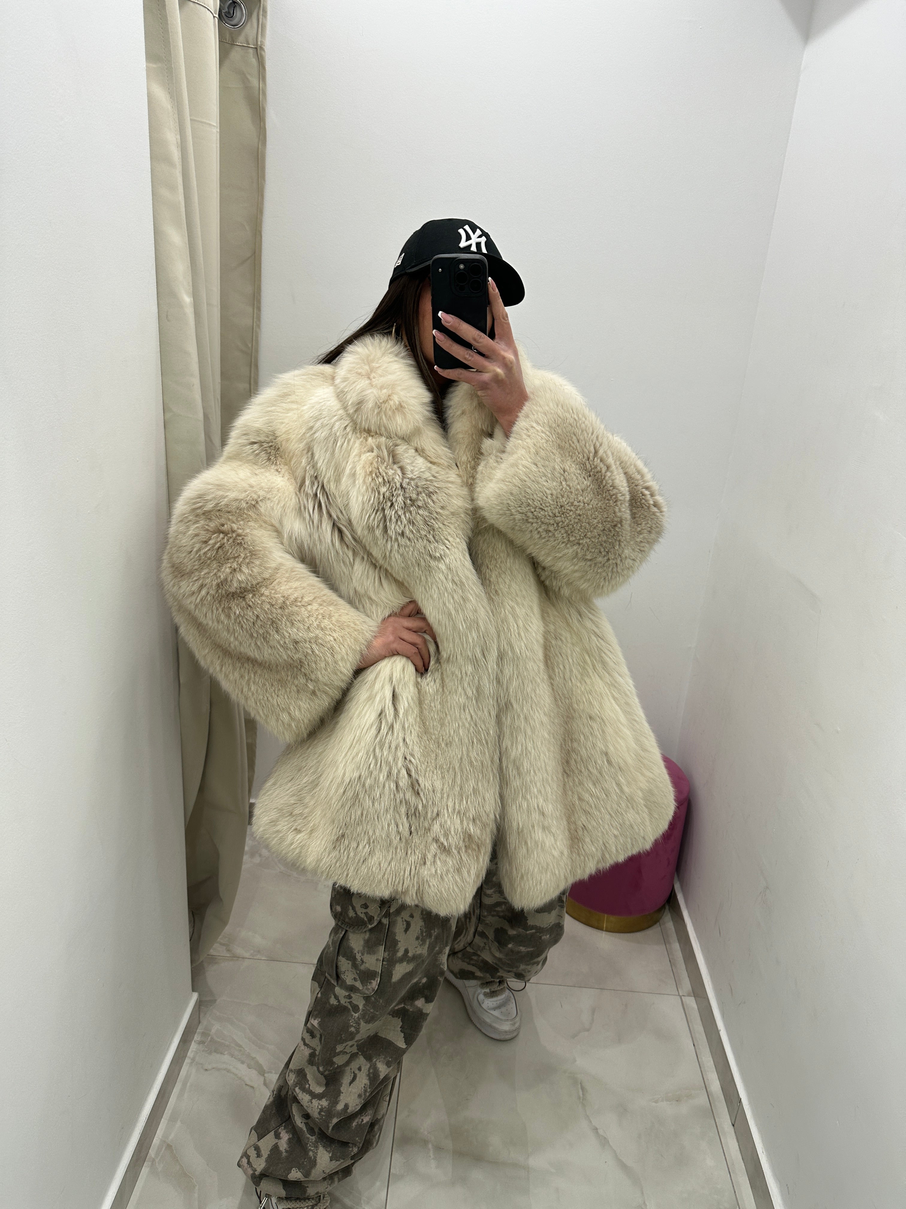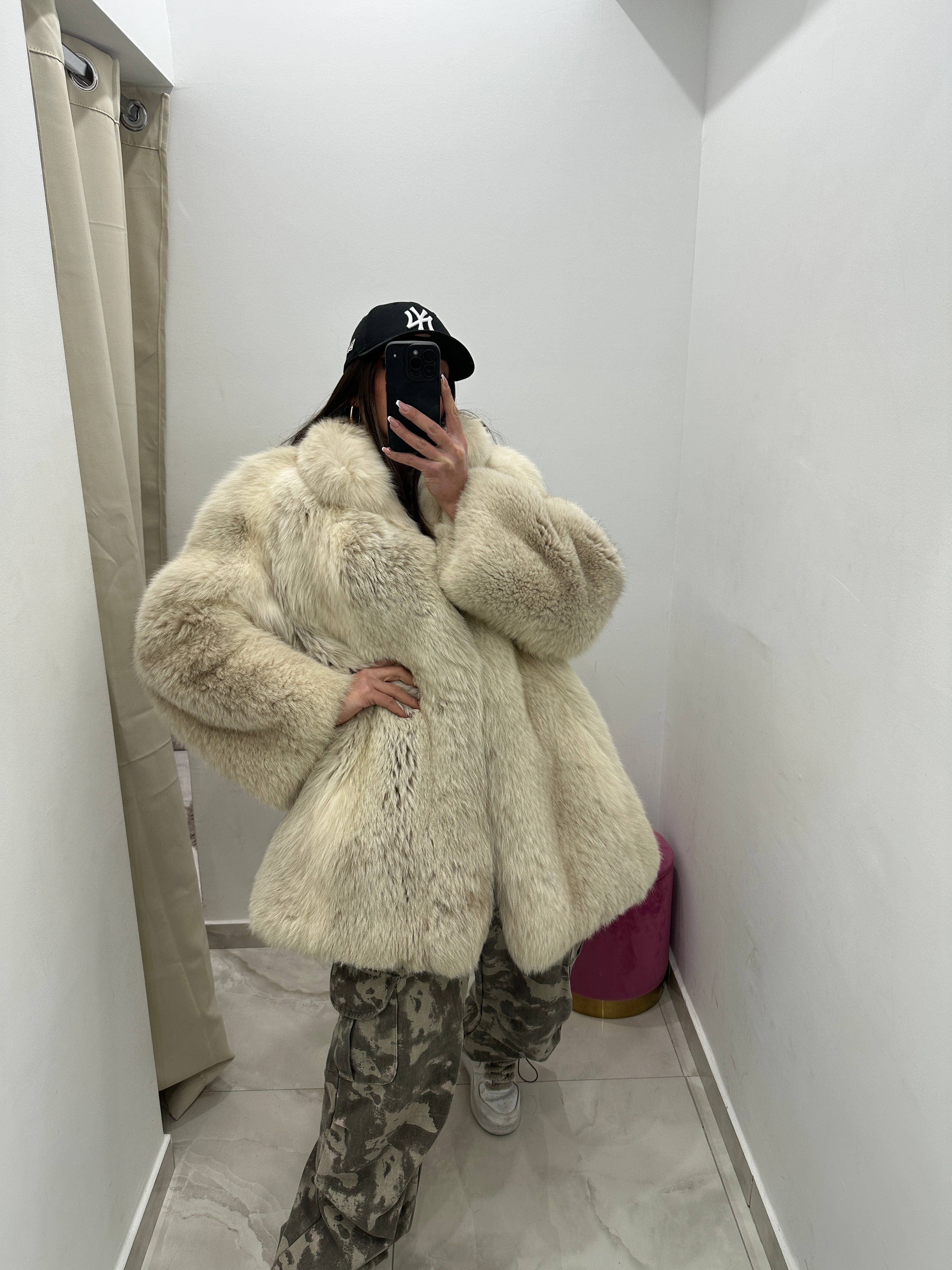 • Pelliccia vera vintage volpe bianca