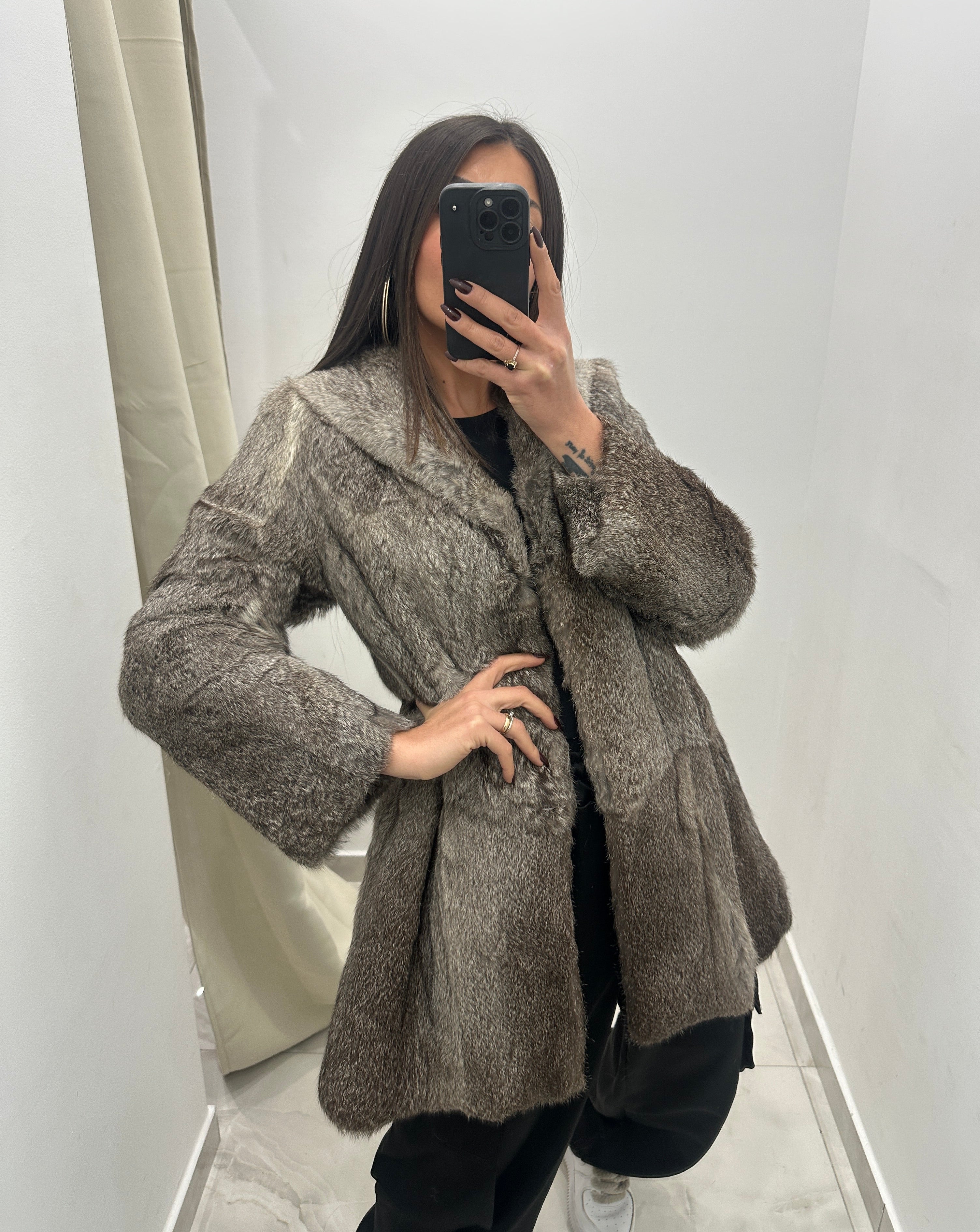 Pelliccia di lapin vera vintage grigia.