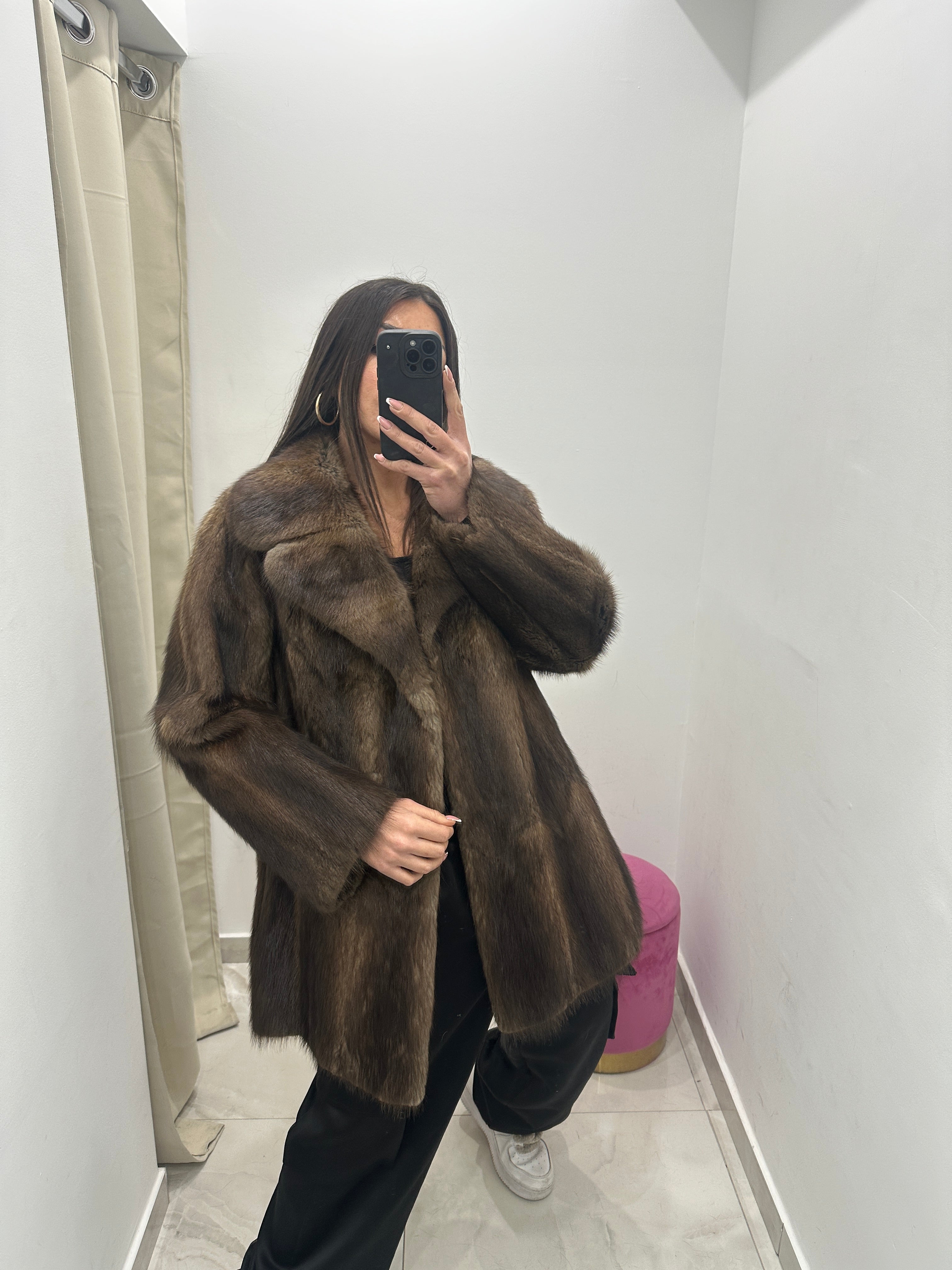 Pelliccia vera vintage marrone con sfumature con marrone chiaro.