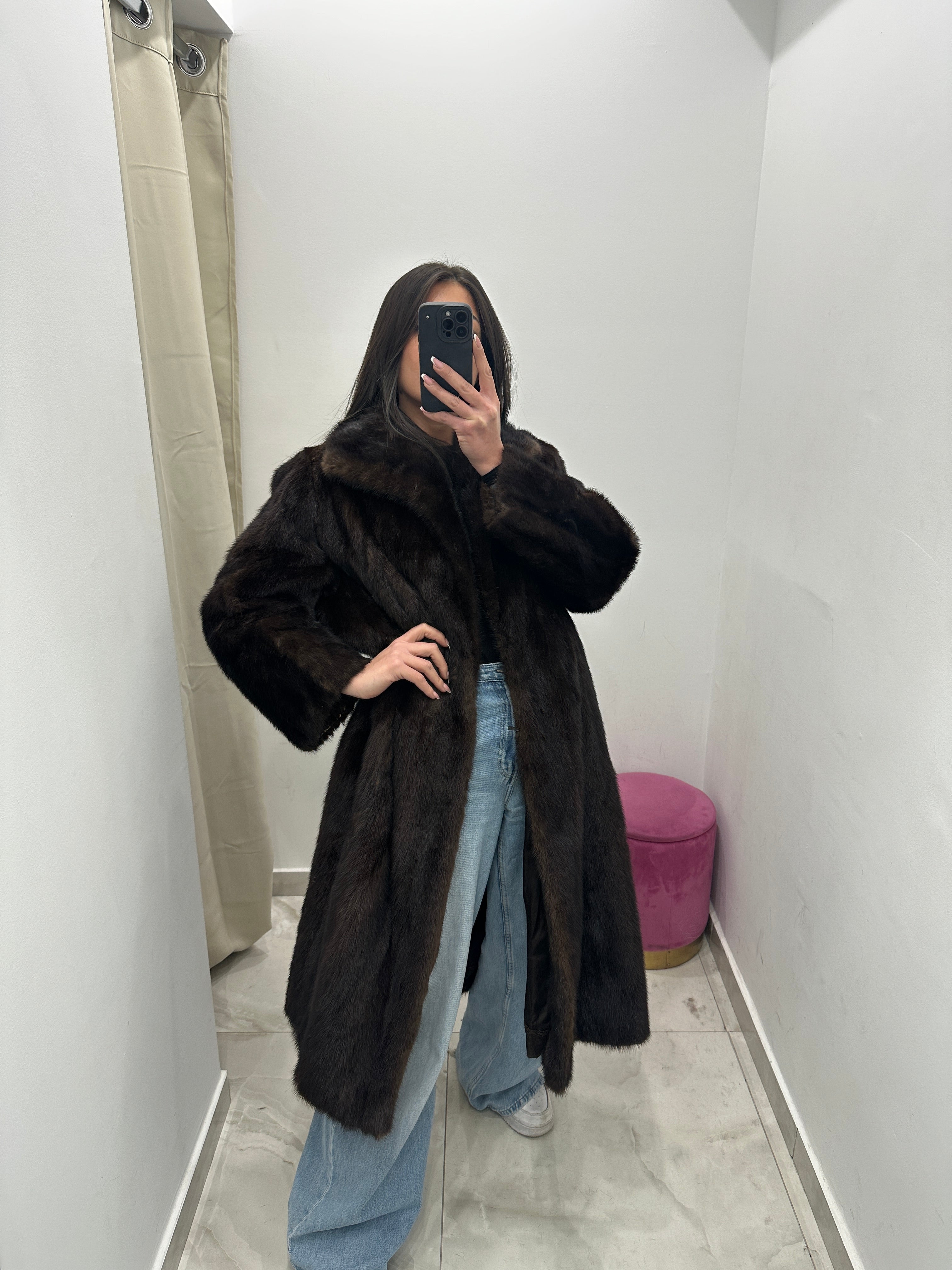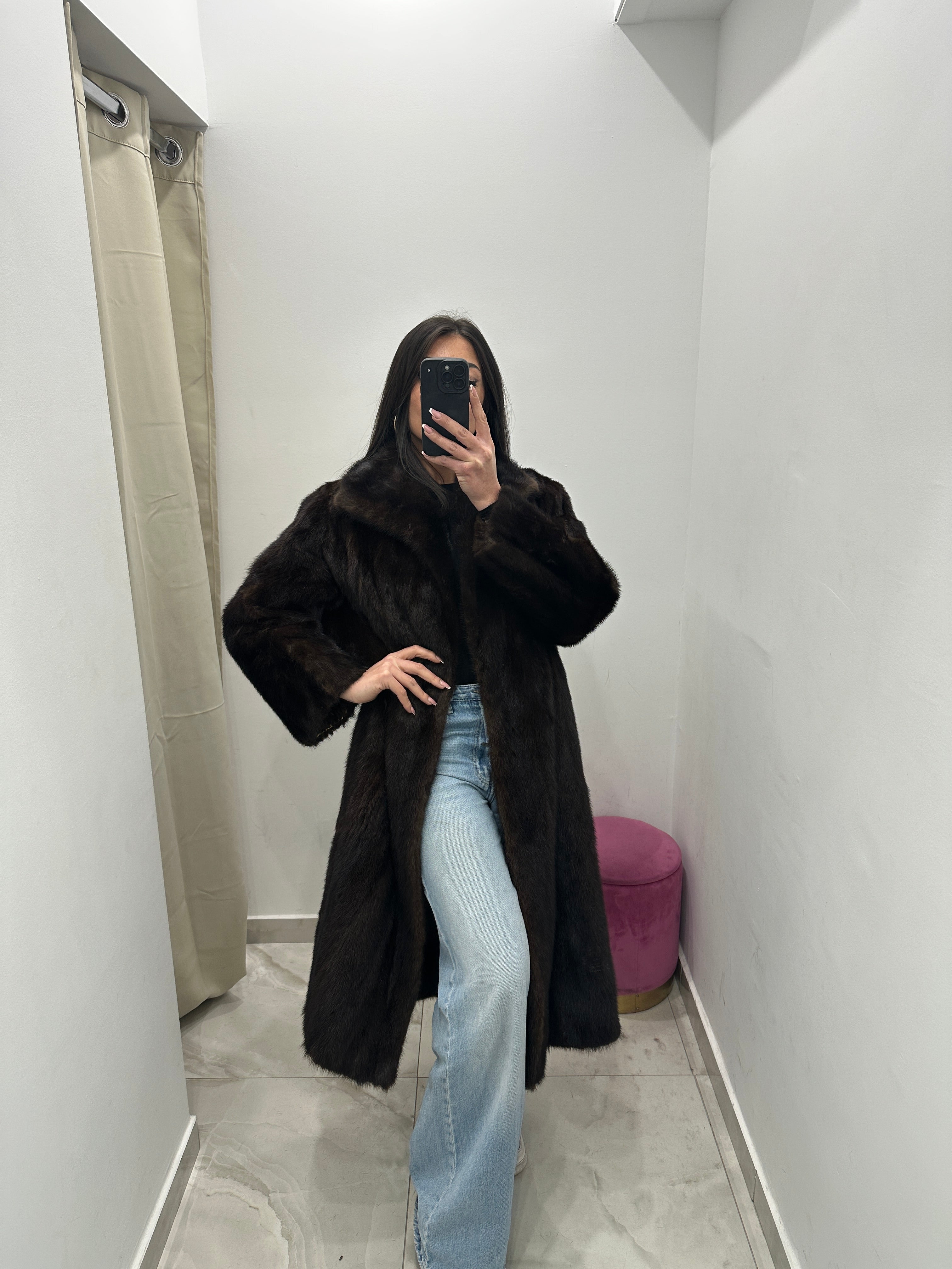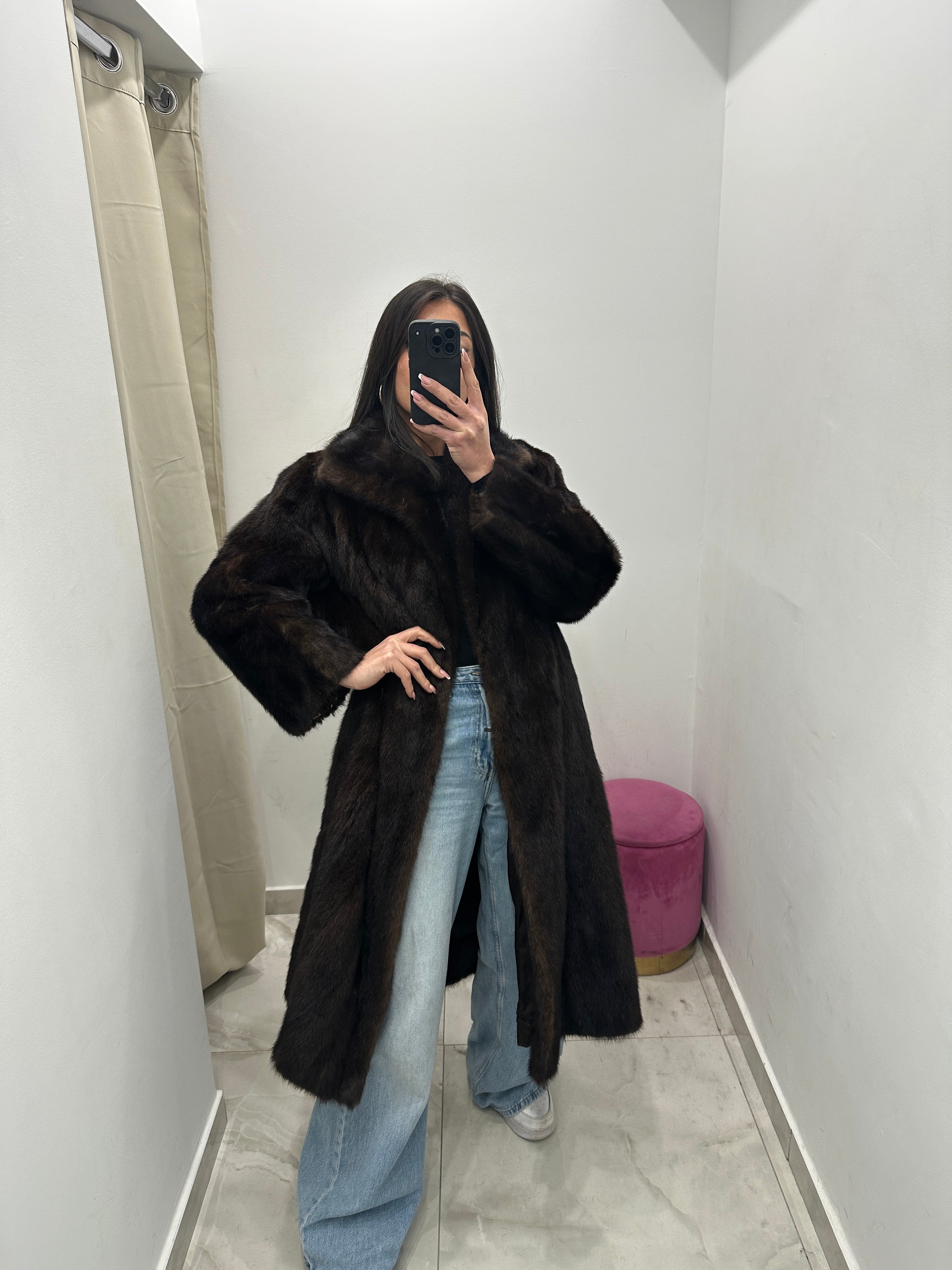 Pelliccia vera vintage visone lungo marrone.