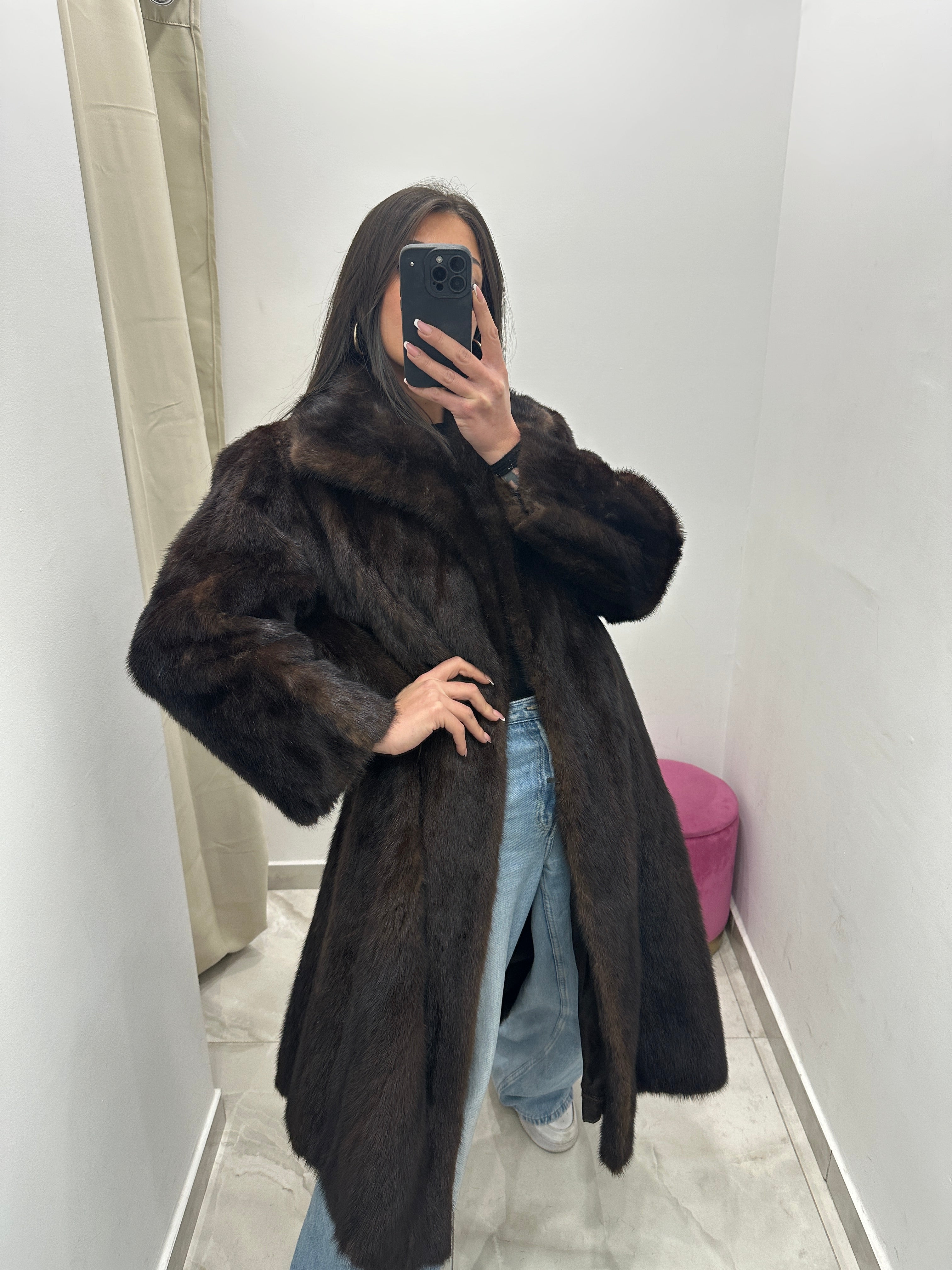 • Pelliccia vera vintage visone lungo marrone