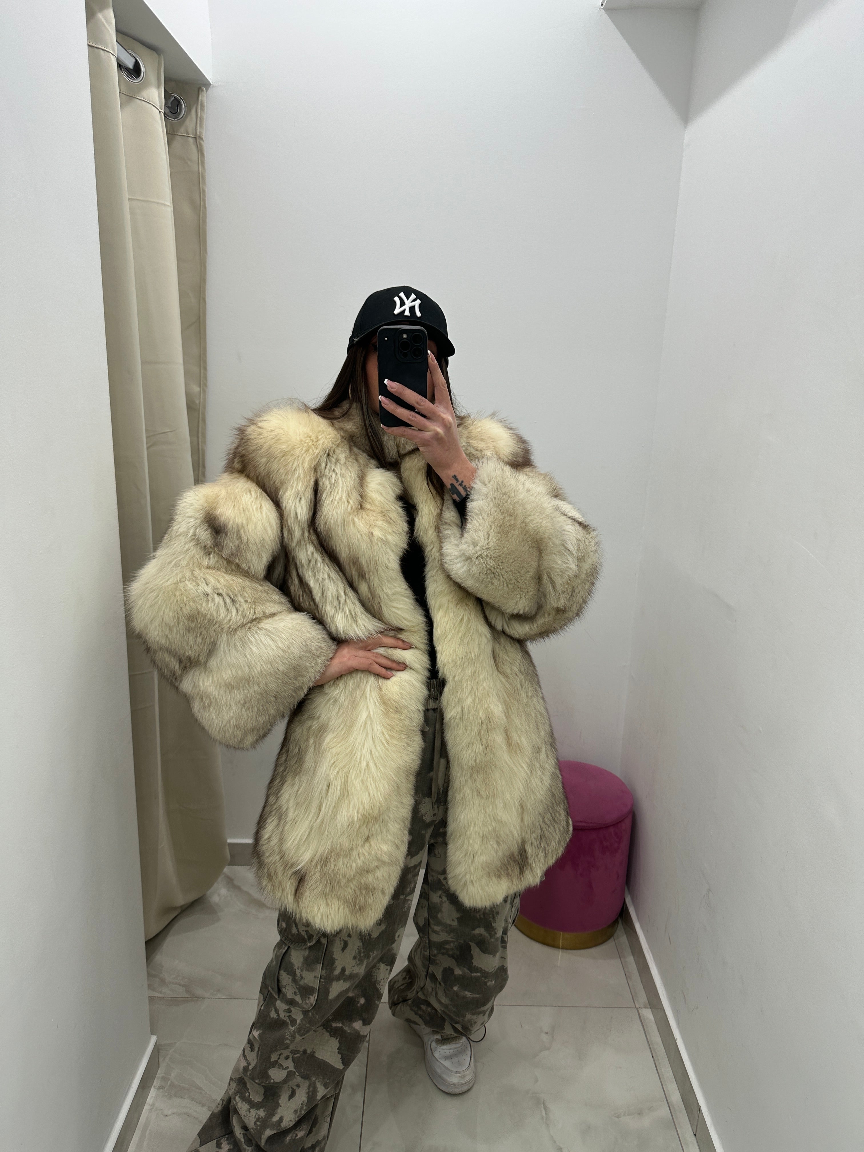 Pelliccia vera vintage volpe bianca con sfumature scure della Groenlandia (SCONTATA PER PICCOLO DIFETTO DIETRO AL COLLO PER ULTERIORI FOTO DETTAGLI CONTATTARE SU WHATSAPP 3892442685)
