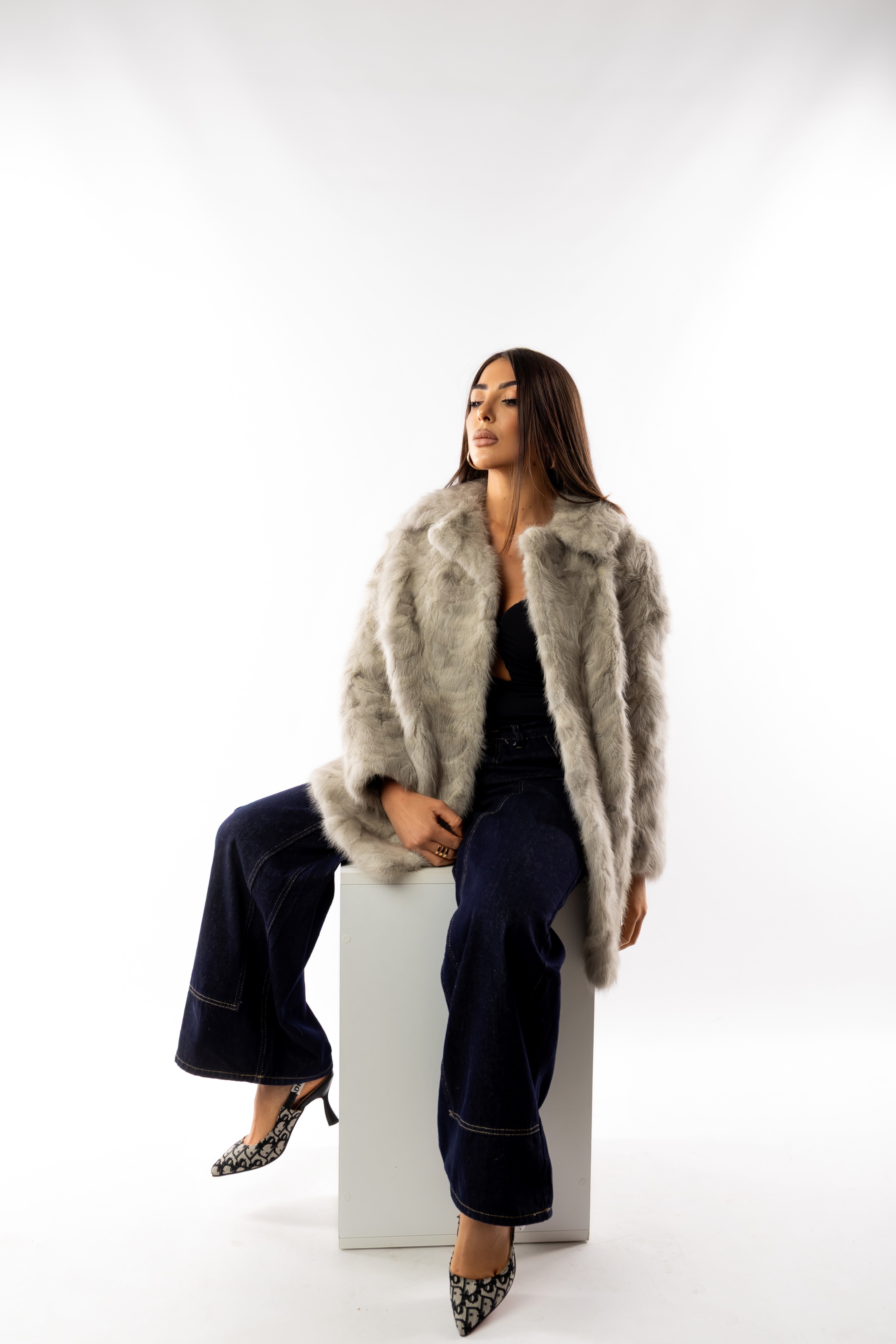 • Pelliccia visone ghiaccio rimessa a modello